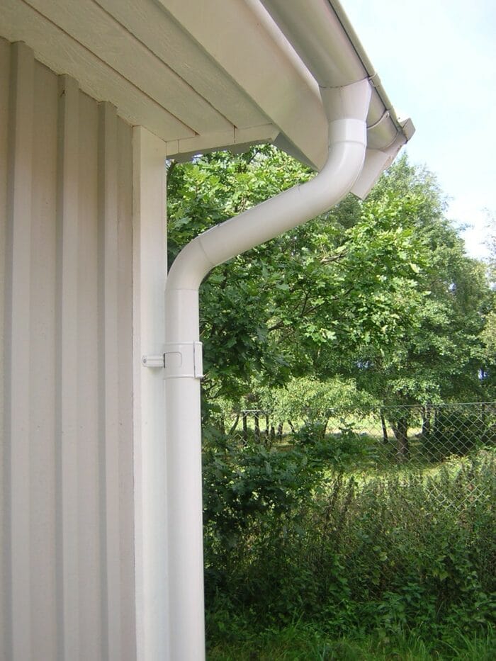 Hängränna, stuprör (med utkastare) och vindskiveplåt ingår i lackerad plåt. Välj mellan: svart, vit, röd eller silver.