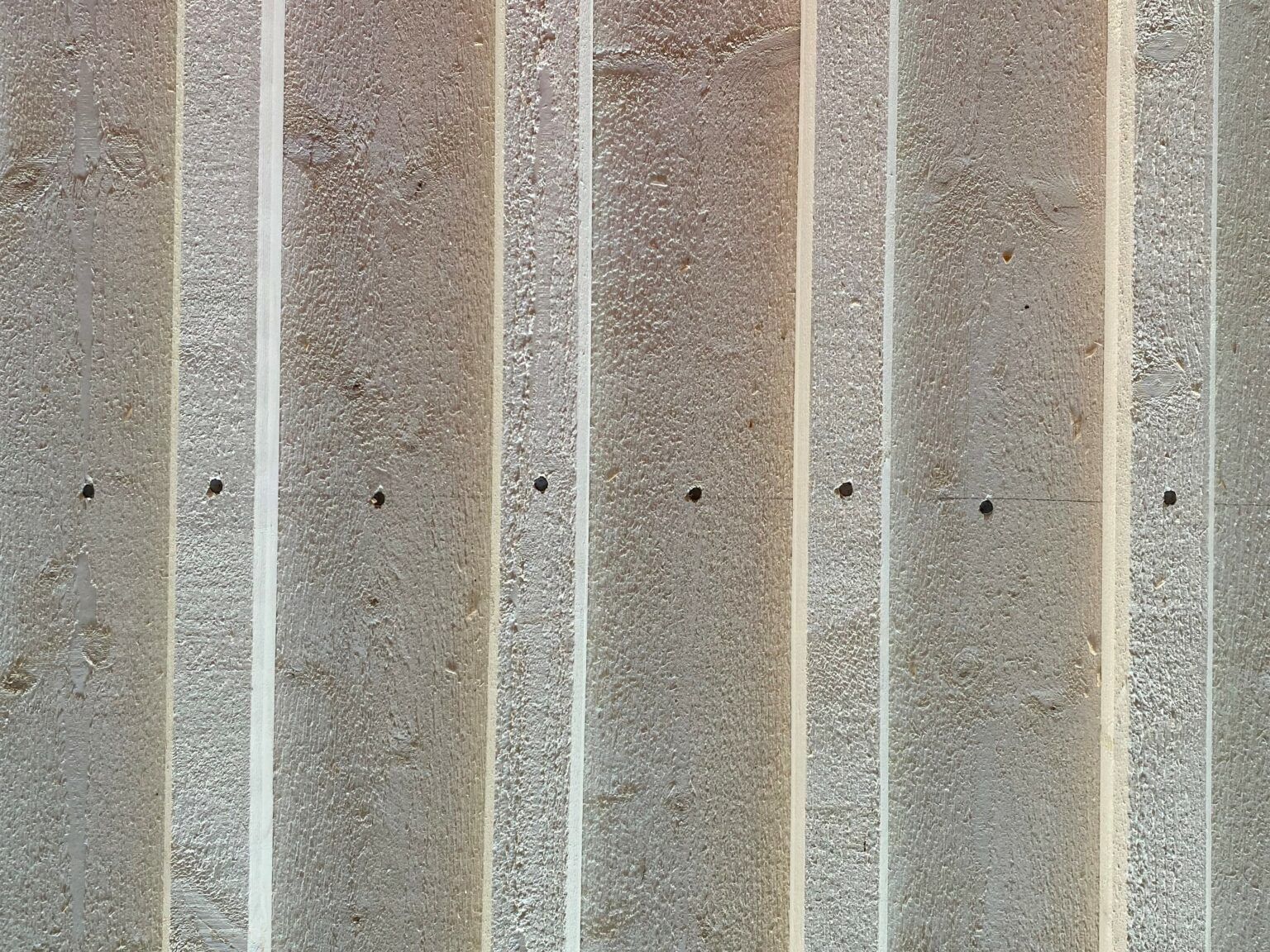 - Panelen är påspikad på väggsektionerna, vilket gör att de känsliga ändträdet (panelens mest känsliga del mot fukt) kommer på samma ställe på väggarna och de skyddas sedan med en stående skarvbräda. Denna skarvbräda smälter fint in i väggarna tillsammans med knutbräderna och foder runt dörr/fönster. Vi har alltså inga synliga skarvar som är känsliga för fukt.