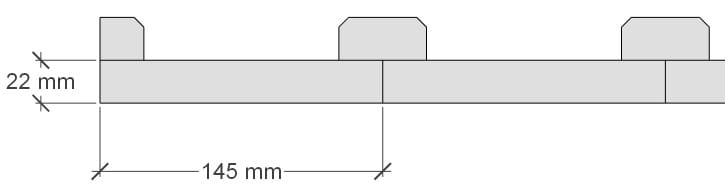 Ribbpanel, 22×145 mm + 22×45 mm list med fasad kant, grundmålad panel.
