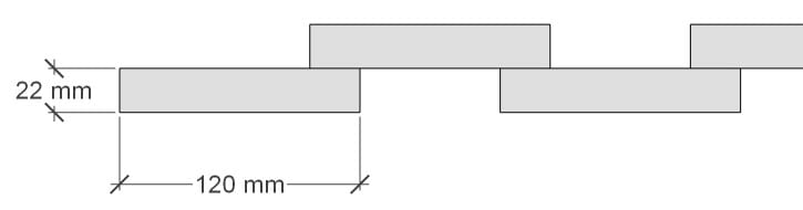 Enkelfas fals, 22×145 mm, liggande grundmålad panel