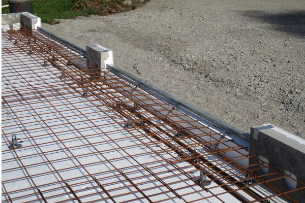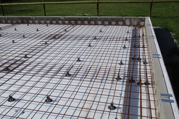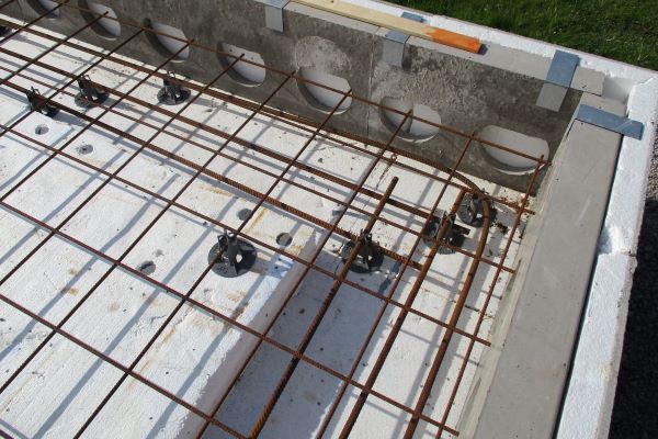 Armeringsmatta, armeringsjärn och syllbalk på plats.
