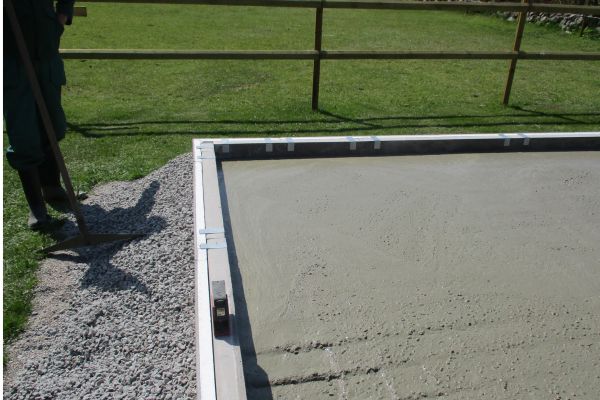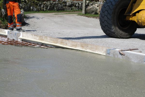 Betongen ska komma ända ut till kanten, och under garagejärnet.
