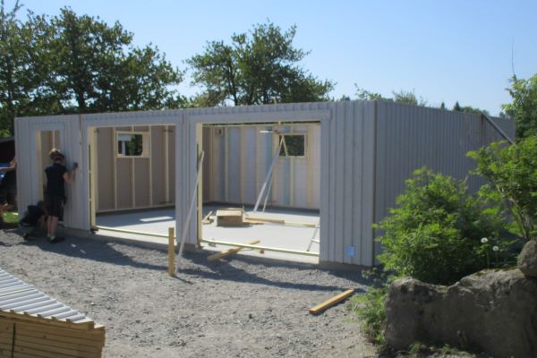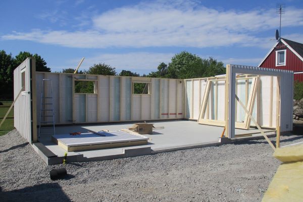 Hål för dörr och fönster, i väggarna, är färdig inkl. utvändigt foder. För att undvika ev. transportskador så är inte dessa monterade i väggarna.